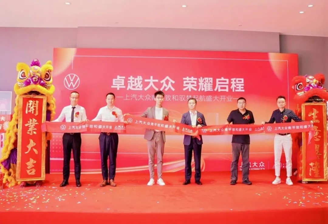 上汽大眾華南區(qū)總經(jīng)理徐子看、盈眾控股集團副總經(jīng)理尤猛杰、上汽大眾大眾品牌華南營銷大區(qū)ID營銷副總經(jīng)理張榕、盈眾上汽大眾品牌總監(jiān)王庭要、盈眾業(yè)務四部總經(jīng)理陳隆龍、南平致和總經(jīng)理許恩華共同為南平致和上汽大眾4S店開業(yè)剪彩。