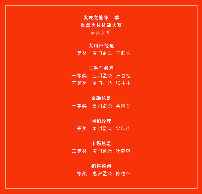 同時(shí)進(jìn)行的還有2019年華南區(qū)經(jīng)銷商重點(diǎn)崗位技能大賽頒獎(jiǎng)儀式。共有七名盈眾人憑借過(guò)硬的專業(yè)實(shí)力、出色的臨場(chǎng)發(fā)揮,在預(yù)賽和決賽中過(guò)關(guān)斬將,成為各個(gè)崗位脫穎而出的“金牌選手”。