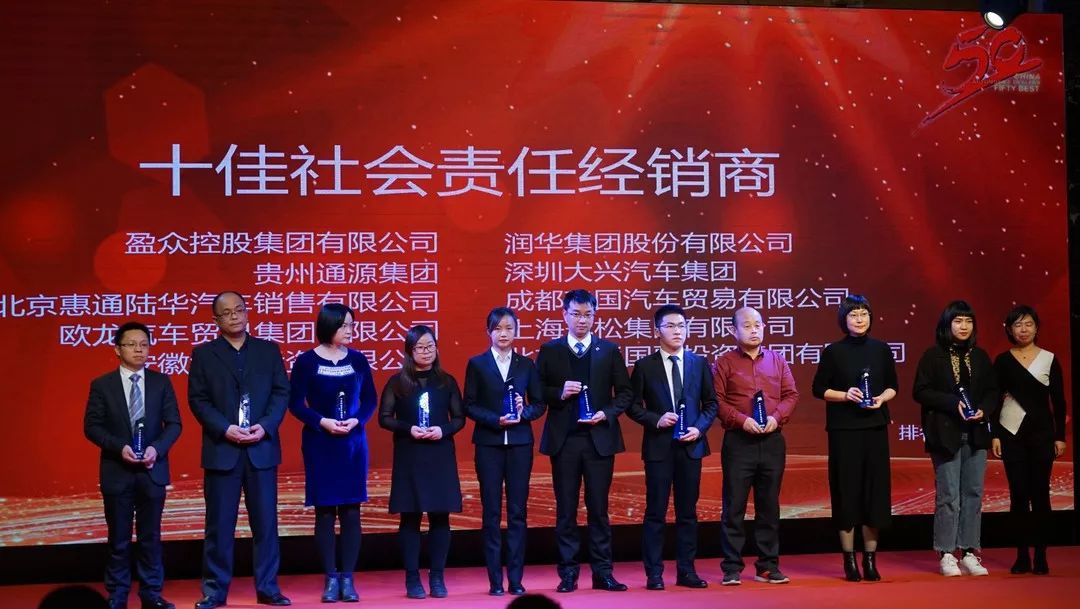 在頒獎(jiǎng)典禮上,盈眾控股集團(tuán)榮獲“十佳汽車營(yíng)銷集團(tuán)”和“十佳社會(huì)責(zé)任經(jīng)銷商”稱號(hào)。
