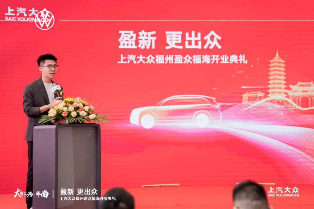上汽大眾華南區(qū)總經(jīng)理徐子看為開業(yè)典禮致辭。他指出,上汽大眾品牌作為中國(guó)汽車行業(yè)的領(lǐng)軍者,始終堅(jiān)守“匠心品質(zhì) 值得信賴”的核心價(jià)值,持續(xù)提升產(chǎn)品及服務(wù)質(zhì)量。盈眾集團(tuán)是上汽大眾忠實(shí)的戰(zhàn)略合作伙伴,旗下上汽大眾展廳已覆蓋廈門、泉州、漳州、龍巖、南平等地,今日福州盈眾福海的落成,是上汽大眾深化區(qū)域布局、貼近本地客戶需求的重要一步,必將為福州廣大消費(fèi)者帶來(lái)全新的購(gòu)車體驗(yàn)與更多的消費(fèi)選擇。